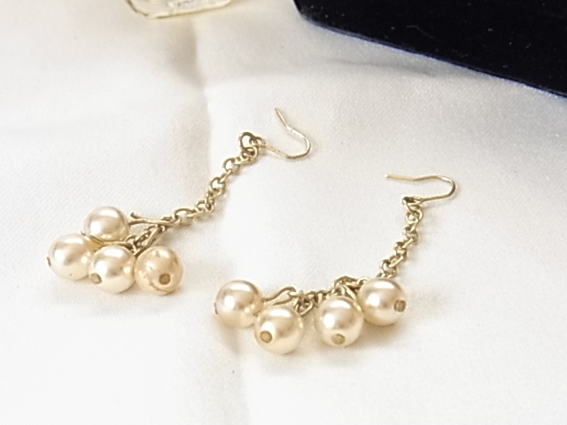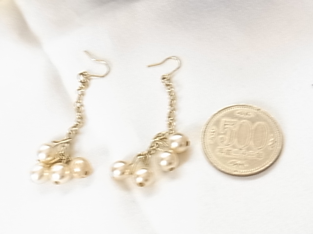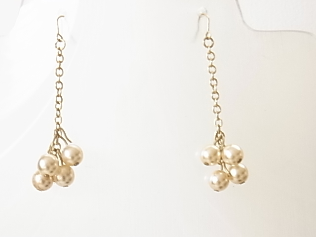 パール調ビジュービーズストーン 光沢感が美しい エレガントに華やかに耳元で揺れるデザインのピアス★