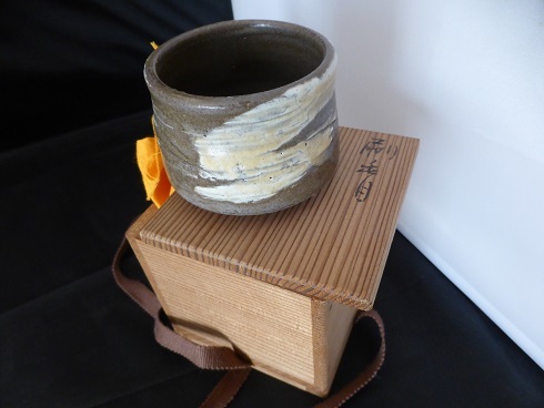 刷毛目 猪口☆湯呑☆汲出し 銘有 箱付 6.5X5cm 92g