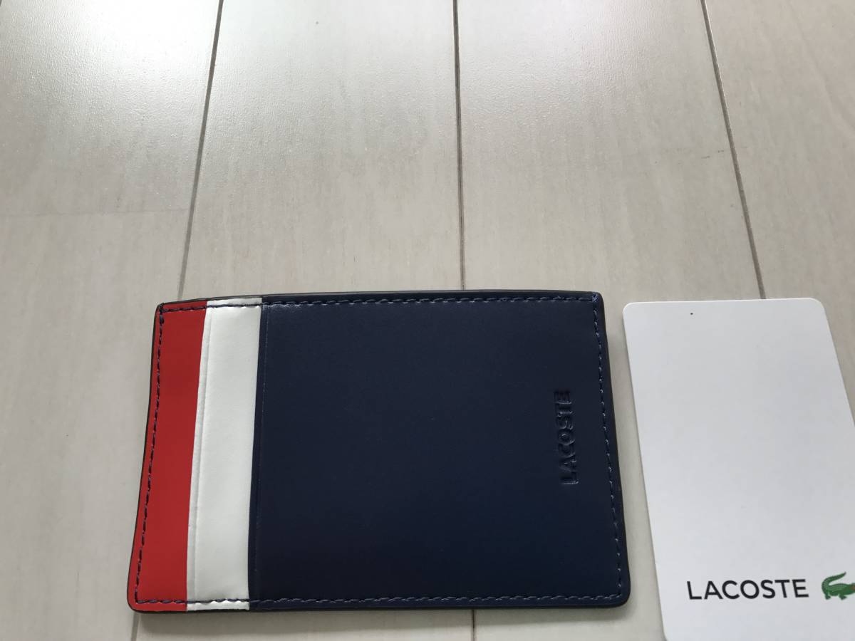 送料無料 新品☆LACOSTE ラコステ クレジット カードホルダー 牛革 トリコロール