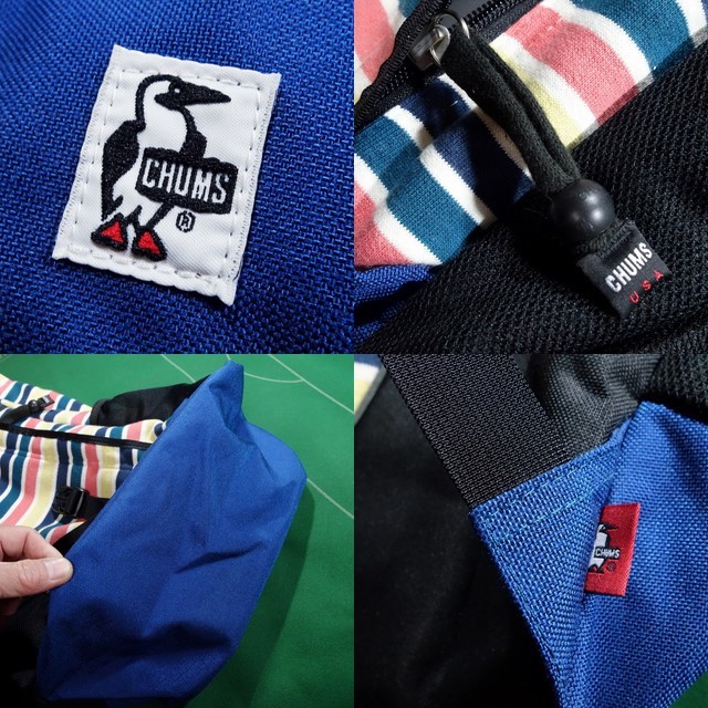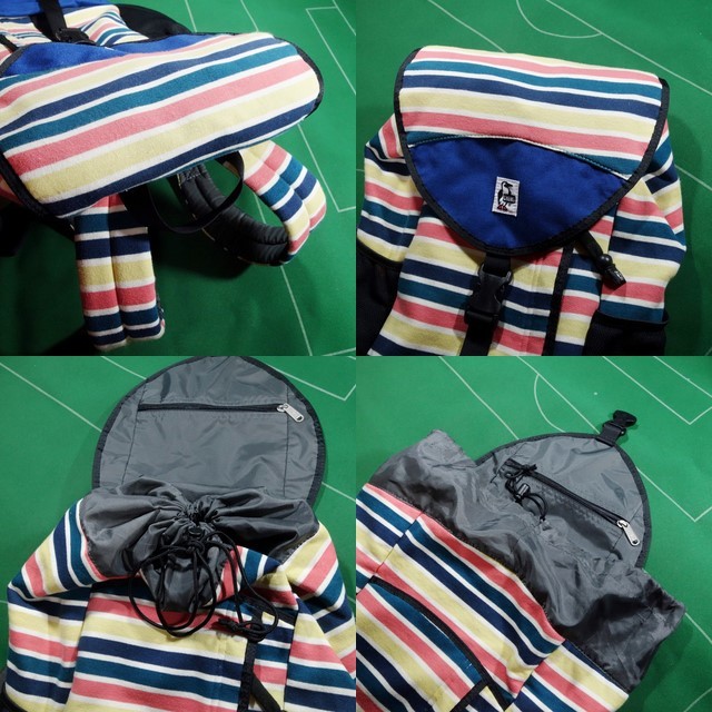 ▲チャムスCHUMS Book Packブックパック リュック スウェットナイロン マルチカラーボーダー/ブルー 美品!!!▲