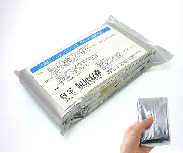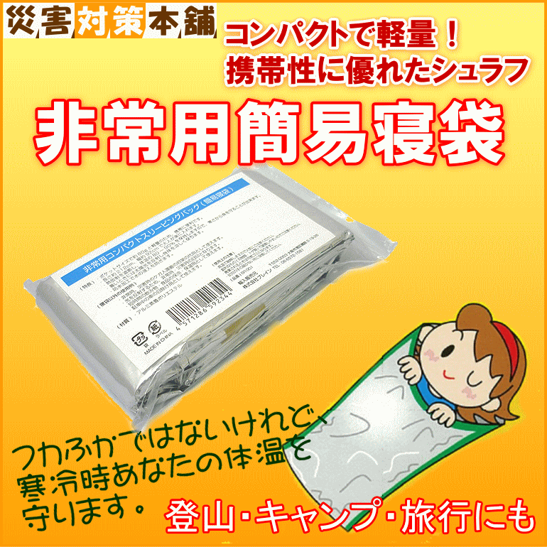 | 商品説明 | 防災グッズ 避難 1人用シュラフ スリーピングバッグ アルミ蒸着ポリエステル製の寝袋です。 コンパクトで軽く携帯性に優れアルミブランケットよりも密閉性に優れます。 クッション性はありませんが、寒冷時でも体温を守ります。 ●サイズ/ 約212×92cm(広げた状態) 約14×7.5cm(畳んだ状態) ●重量/約80g ●材質/アルミ蒸着ポリエステル アルミブランケットでもお馴染みの素材、アルミを蒸着したPET(ポリエチレンテレフタレート)製で毛布1枚分の効果があります。 袋形状のため足元の乱れを気にする必要がなく、また、繊維の生地を内側にして袋状に加工しているので中に入ることにより、体温の反射効果で保温性が保たれ、体温を維持します 防災 減災 備蓄 災害対策 グッドパック 防災グッズ 避難 アウトドア キャンプ 1人用シュラフ スリーピングバッグ |
