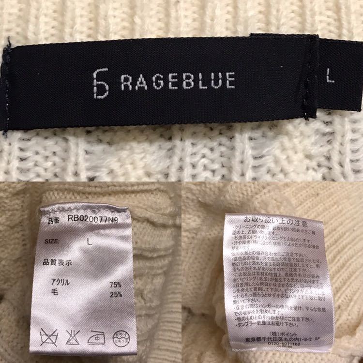 G840 メンズセーター RAGEBLUE レイジブルー カジュアル ニット ケーブル ホワイト ウール (6)/ L
