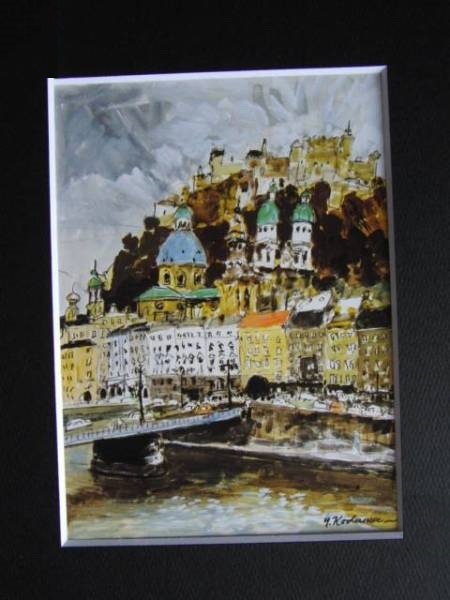 児玉幸雄、ザルツブルグ風景(オーストリア)、希少な額装用画集より、新品高級額装付、状態良好、送料無料