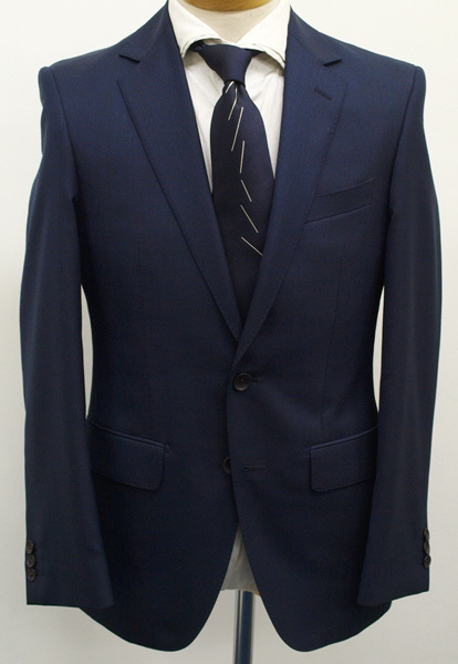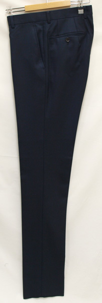 【サイズ】 Y4 (YS/YA4号相当) 目安の体型 身長160cm~170cm、ウエストサイズ74cm前後 【ジャケット実寸】 肩幅43cm 着丈67.5cm 袖丈59cm 脇下部分46cm 身幅42cm 【パンツ実寸】 ウエスト(胴回り実寸)74cm (平置きでかるくはかると74cmでひっぱってはかると76cmです。股上が浅いため実寸が2~3cmほど大きめに作られております。) わたり幅29.5cm 股下から10cm下の部分26.5cm 裾幅17.3cm 脇股上21cm 前股上22.5cm 股下90cm(裾上げしていない状態/新品) 【デザイン】 すっきりとしたコンパクトな印象の細身シルエット、タイトフィット、スリム、ビジネススーツ新品、裾上げしていない状態です。 ・ジャケットはシングル2つボタンでスリムモデル ・パンツは股上が浅く裾巾が狭めで細いシルエットのノータックスリムテーパードパンツ 【仕様】 ・ジャケットはシングル2つボタン、ノッチドラペル、襟縁等AMFステッチ入り、袖口ボタン3つ、センターベント、内ポケット4つ(小ポケット2つ含む)、総裏(秋冬物) ・パンツはノータック、膝裏当て付き、脇ポケット斜め付け、後ろポケット両玉縁で左のみボタン付き、フロントはファスナーでボタン&ホック仕様/うちかけボタンあり こまかい部分まで細部にわたりきちんとしたビジネス仕様の縫製仕立てで仕上がっております。 【素材】 表地:ウール50% ポリエステル50% 裏地:胴裏/ポリエステル100% 袖裏/ポリエステル100% 【色】 濃紺色 【柄】 ピンヘッド織柄 冬向けの中ではそれほど厚みのない適度な厚みの秋冬向け紳士スーツ用のウールブレンド素材を使用 秋~冬~春先にかけて秋冬メインのシーズン対応商品