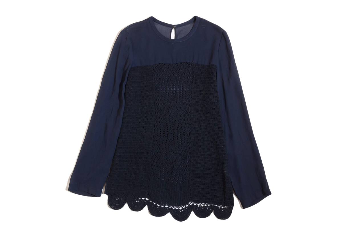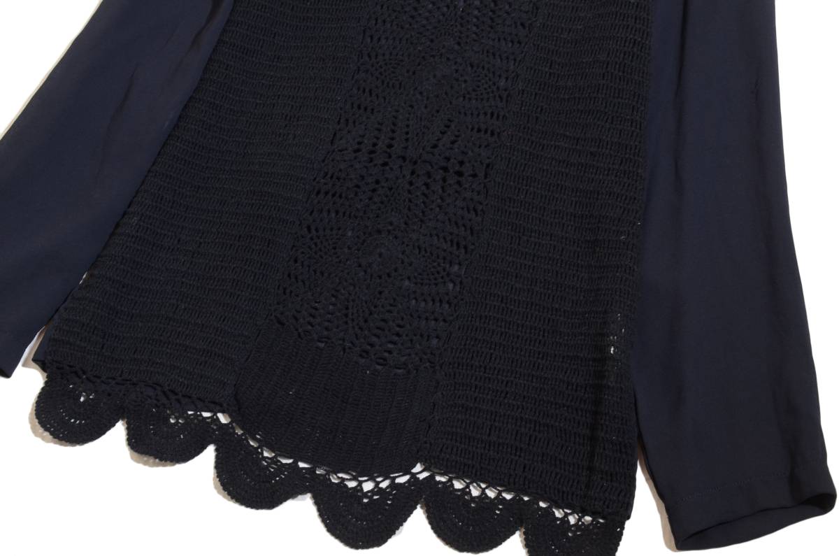 トリココムデギャルソン クロッシェニット切り替えシフォンブラウス トップス 紺