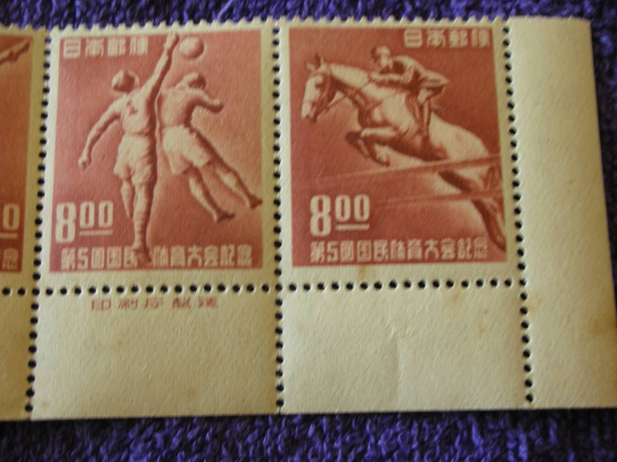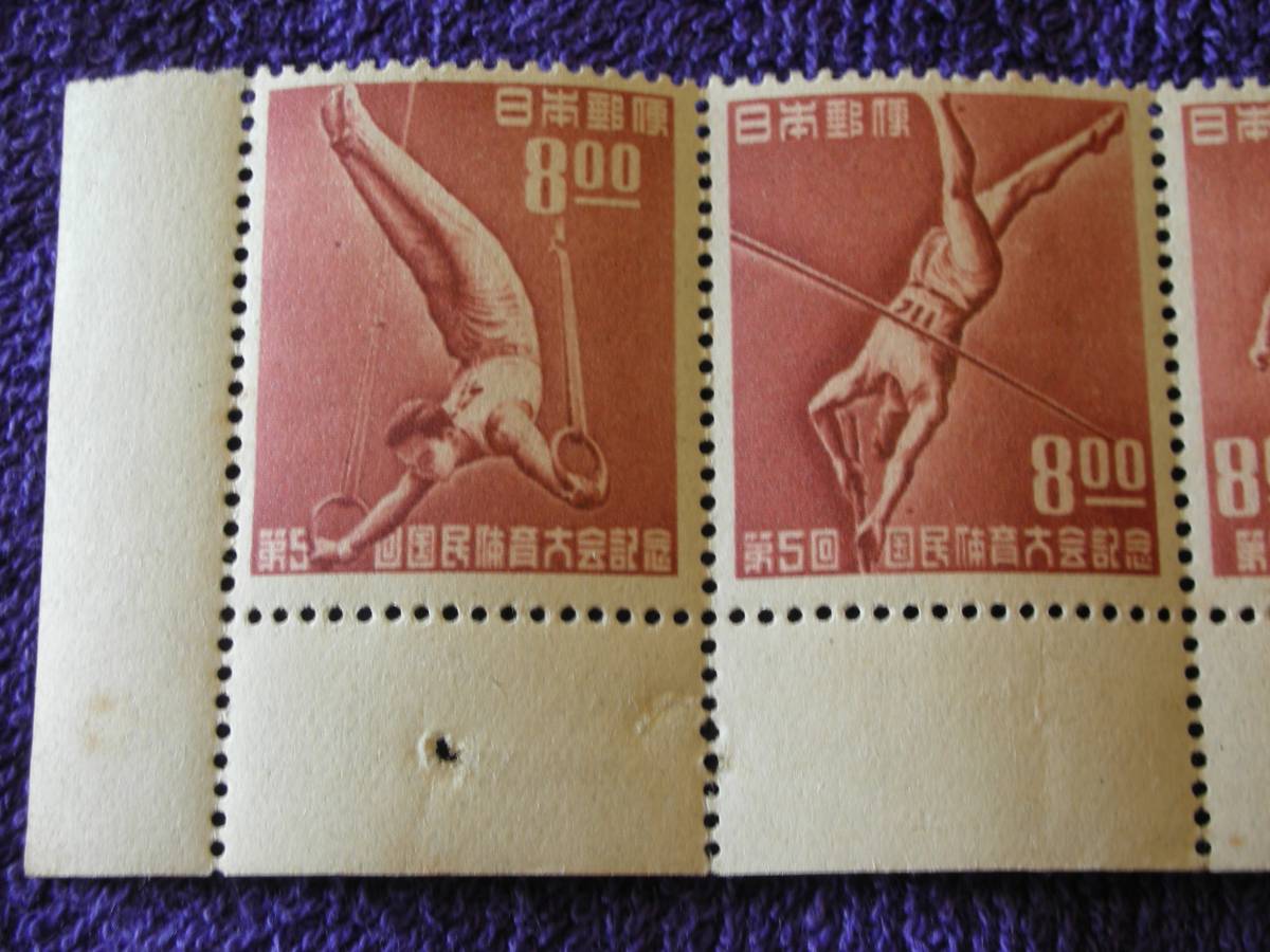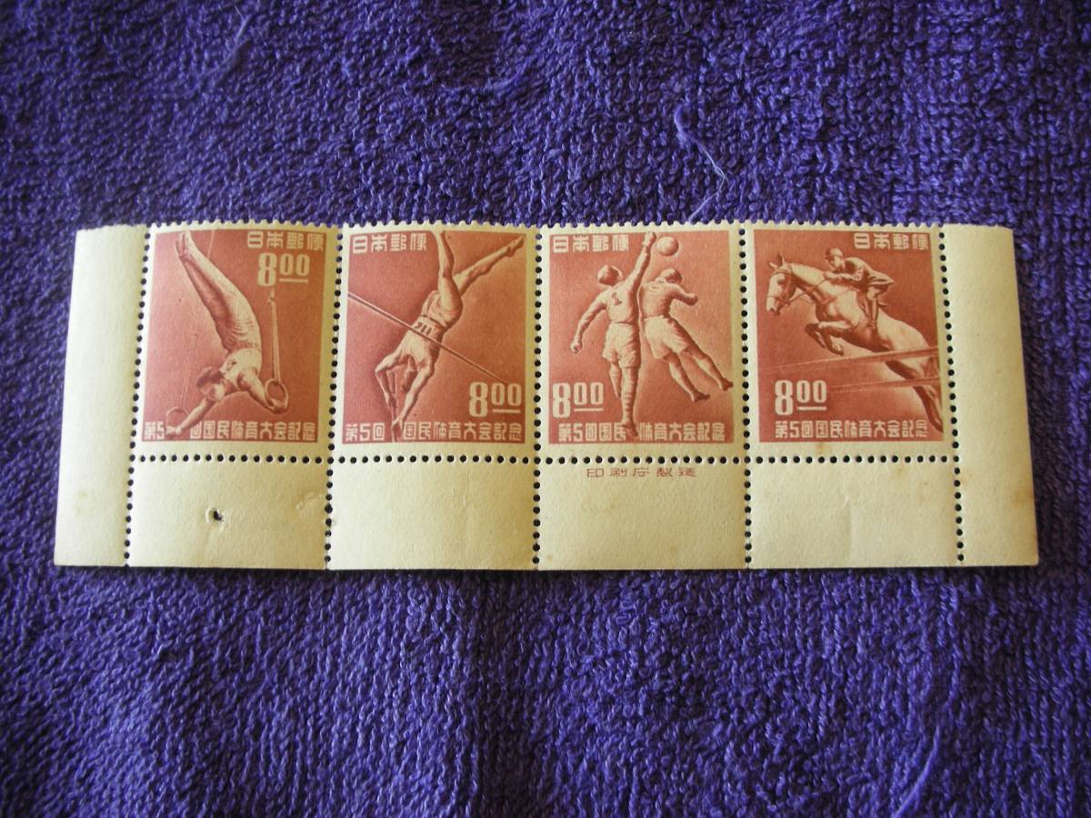 第5回国体 8.00 4種 横連刷 銘版付 4枚 裏面糊黄ばみ有り 型価3万円 格安
