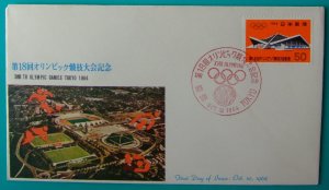 初日印◆FDC◆第18回オリンピック東京大会 50円「駒沢体育館」 1964.10.10