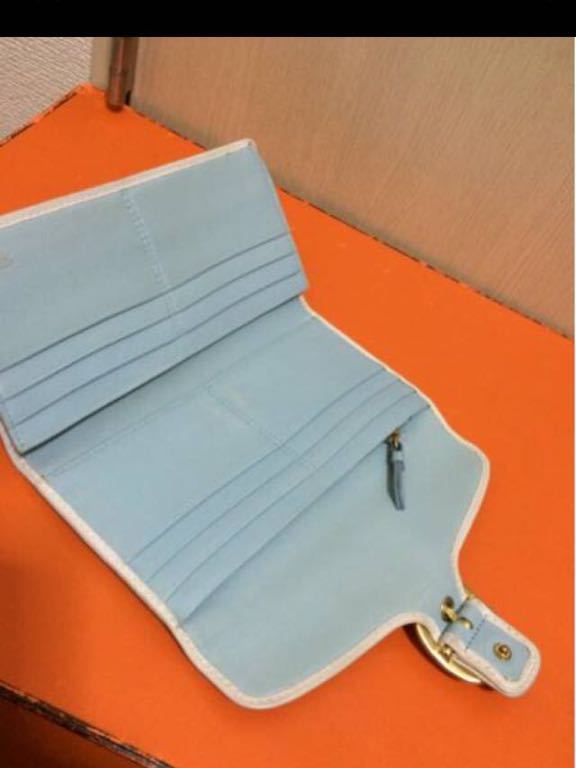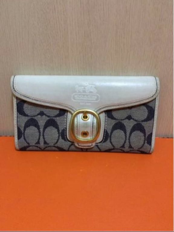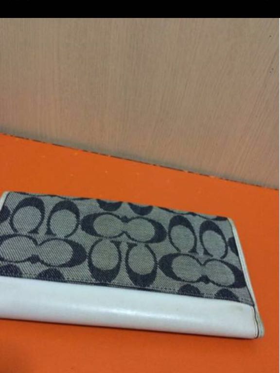 本物コーチ白×ブルー系シグネイチャーの長財布