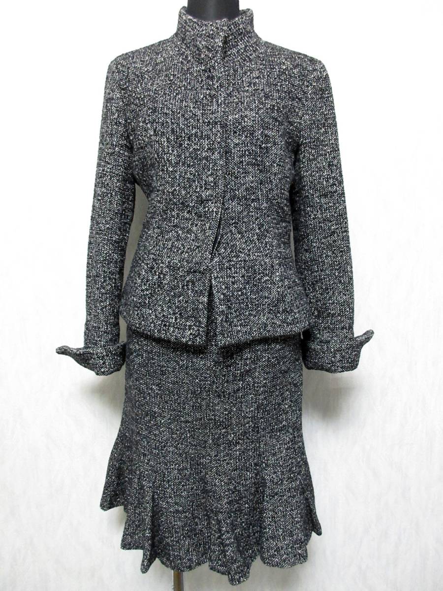 マテリア MATERIA セットアップ ツイード スカート スーツ ウール 黒 ブラック 38 東2636