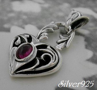 シルバー925銀のレッドジルコニア付アラベスク ハート ペンダント/S&A silver