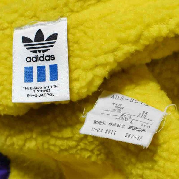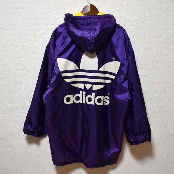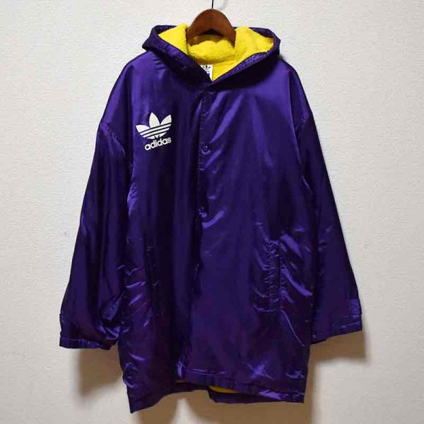 美品★adidas アディダス★90sビンテージ ビッグトレフォイルロゴ ナイロン中綿コート 裏ボア L デサント社 日本製 80sオールドスクール