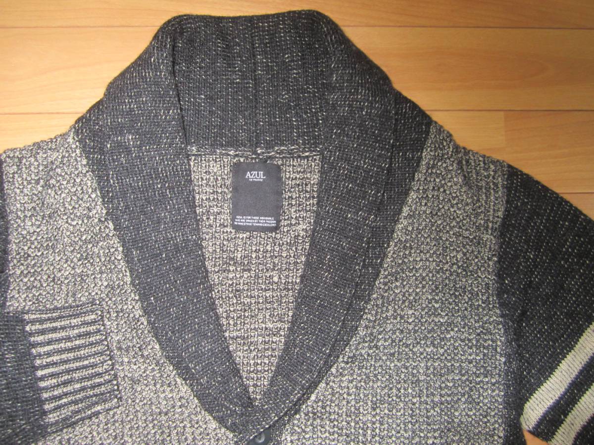 ★AZUL by moussy no.2516AB70-0060 ショールカラー デザインカーディガン★黒杢灰sizeM★