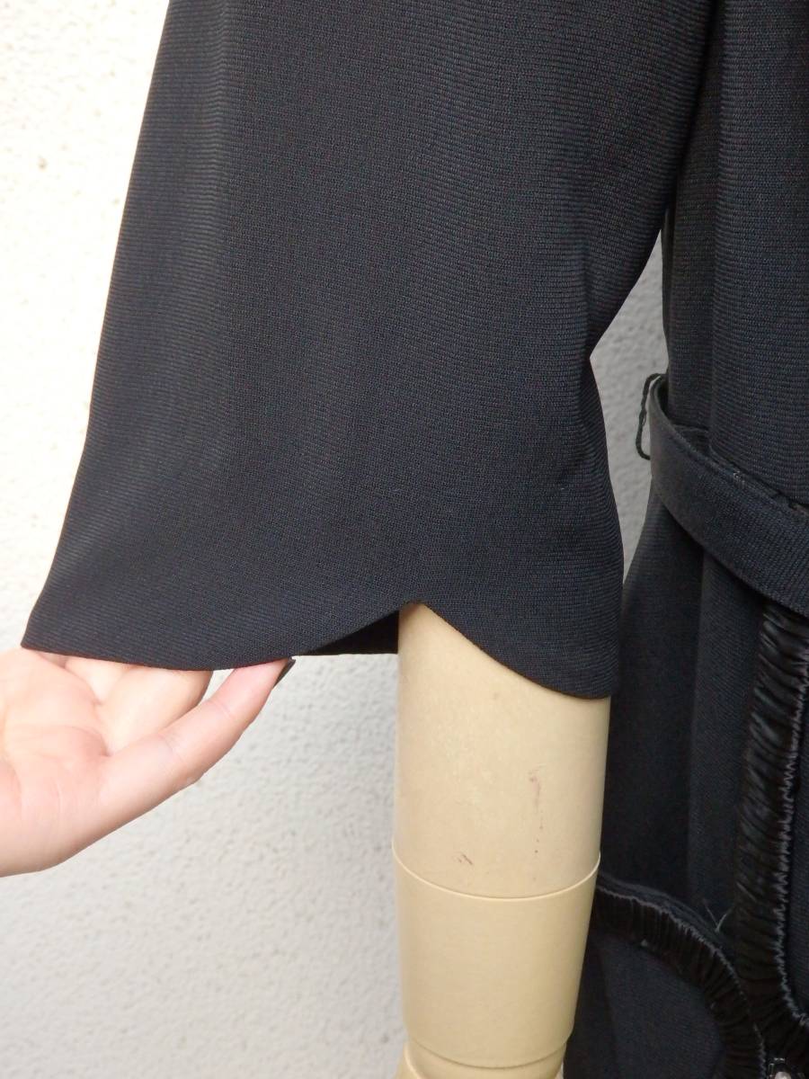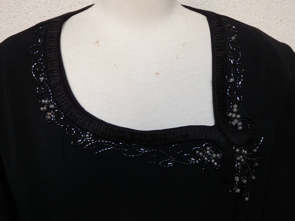 ネックラインやポケット口周りに施された、ギャザーシルクや模造パール&ビーズが戦後のモード界の豊かさを象徴しています