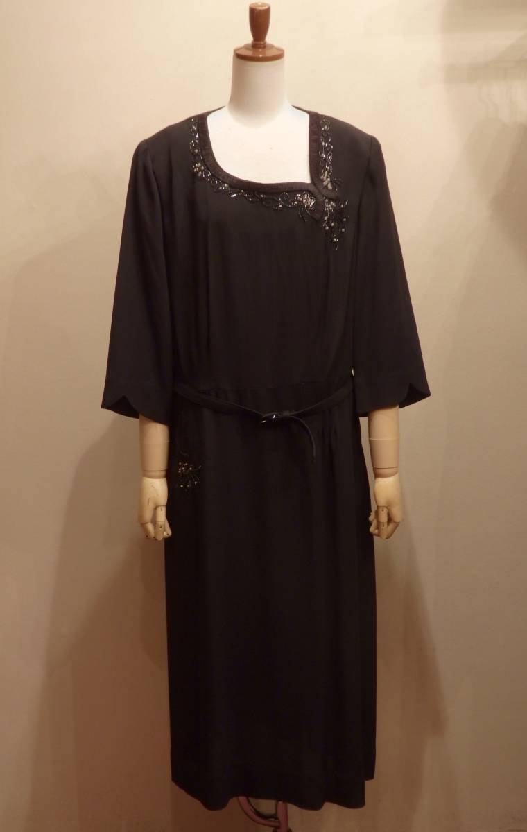 40'sヴィンテージ模造パールビーズ装飾ドレス30'sワンピースフランスSWINGパーティーロカビリーヨーロッパ古着ΓSD