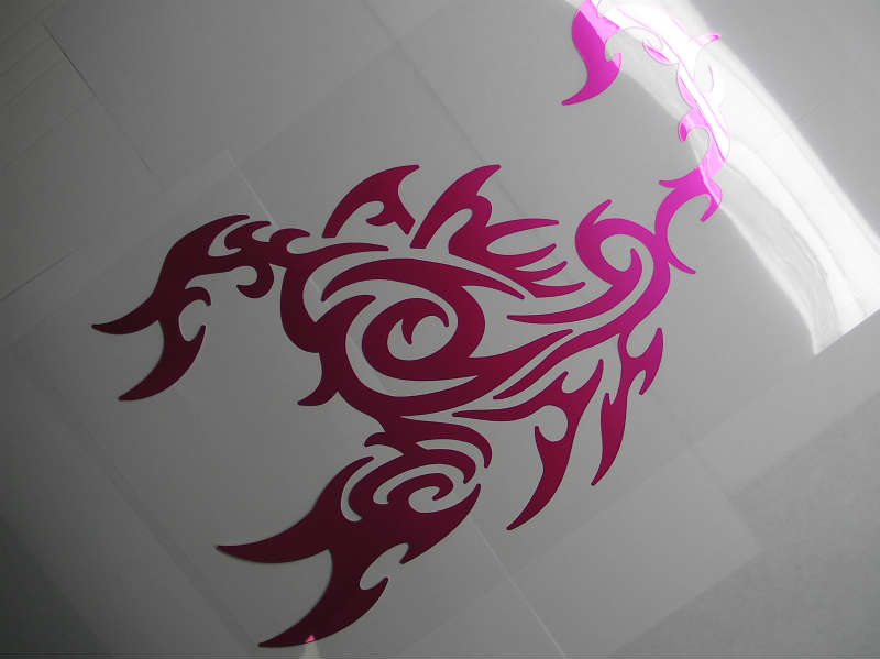 鏡面タイプのトライバルステッカーです。風雨はもちろん紫外線・海水にも強いステッカーで、屋外で5年の耐久性があります。(http://www.be-sticker.com/では他のステッカーもご覧いただけます)