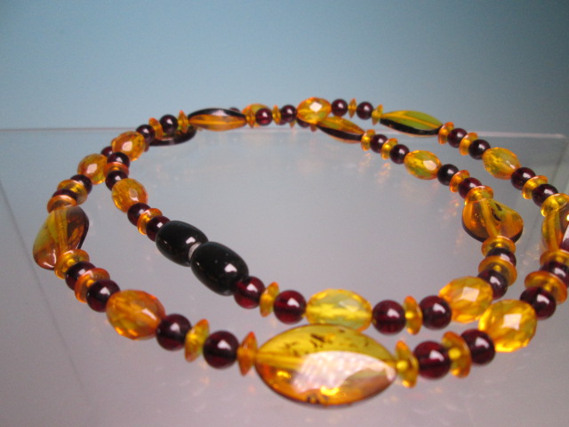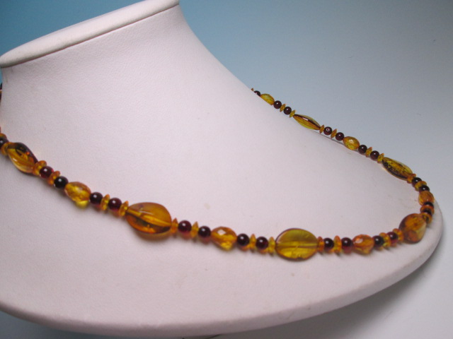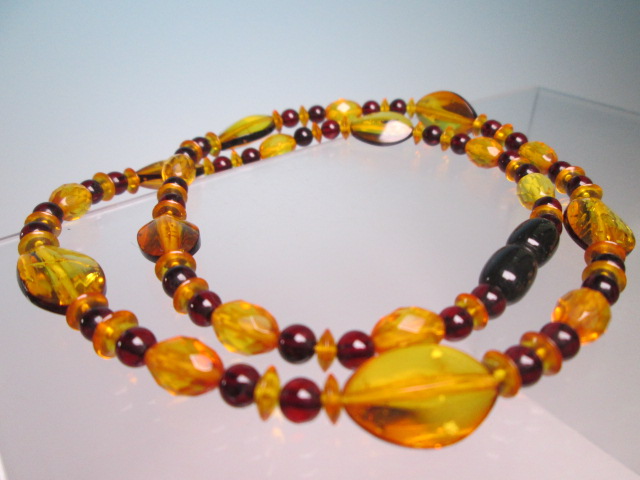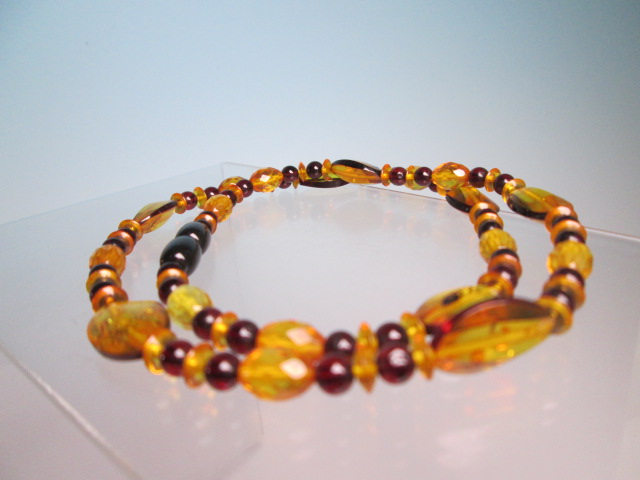 天然琥珀の3種スリーカラーのデザインネックレスです。