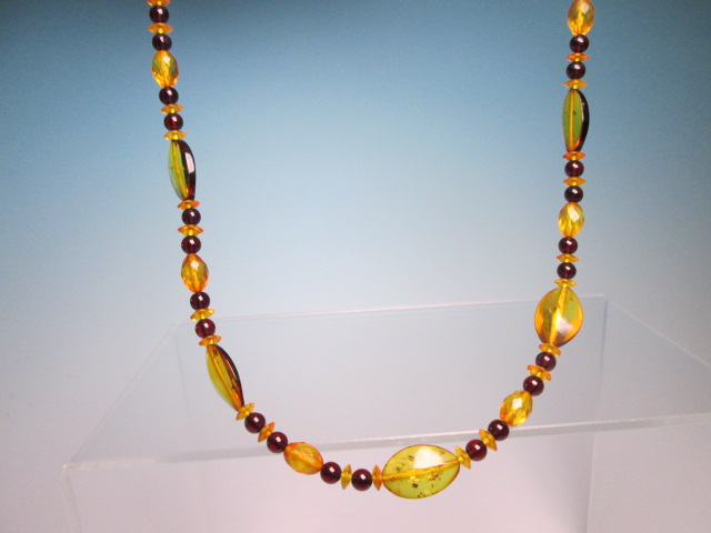 ☆天然琥珀 スリーカラーの素敵なデザインネックレス