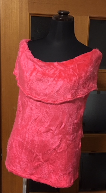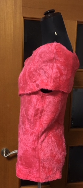 手触り柔らかな、薄手に近い中圧での毛足の長い起毛ニット生地の商品で、デザインのとても可愛いオフショルダーデザインのお薦め品です。