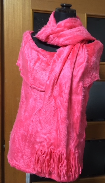 優しく明るいピンク一色。マフラーも同じ生地です!