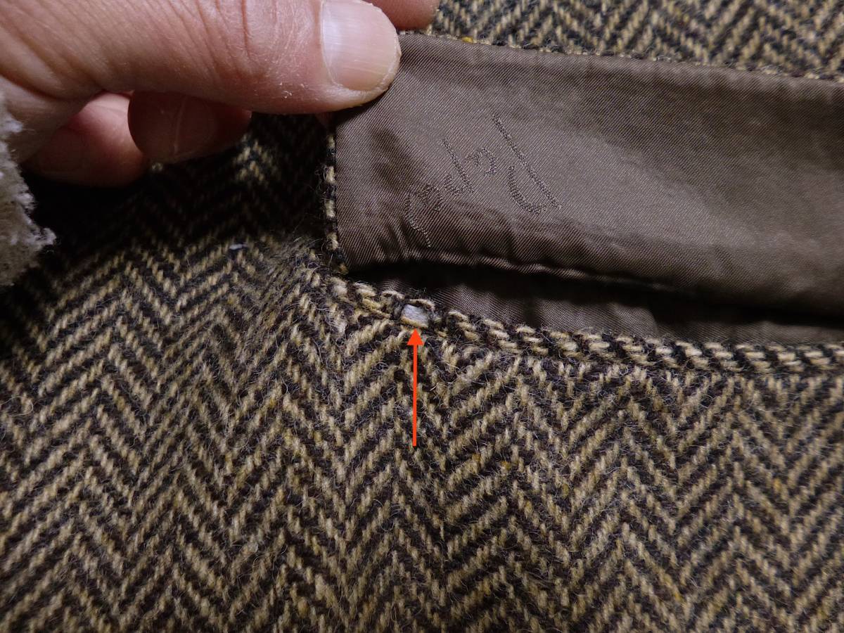 | 素材 | ウール100%のジョンハンリー社製のツイード地。キュプラ52%ポリエステル48%の薄手な裏地が付いています。 |