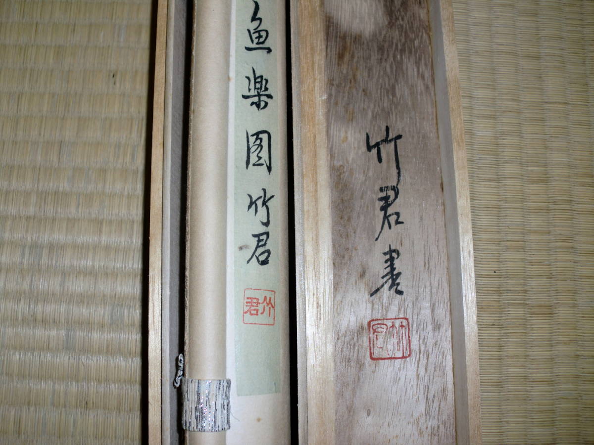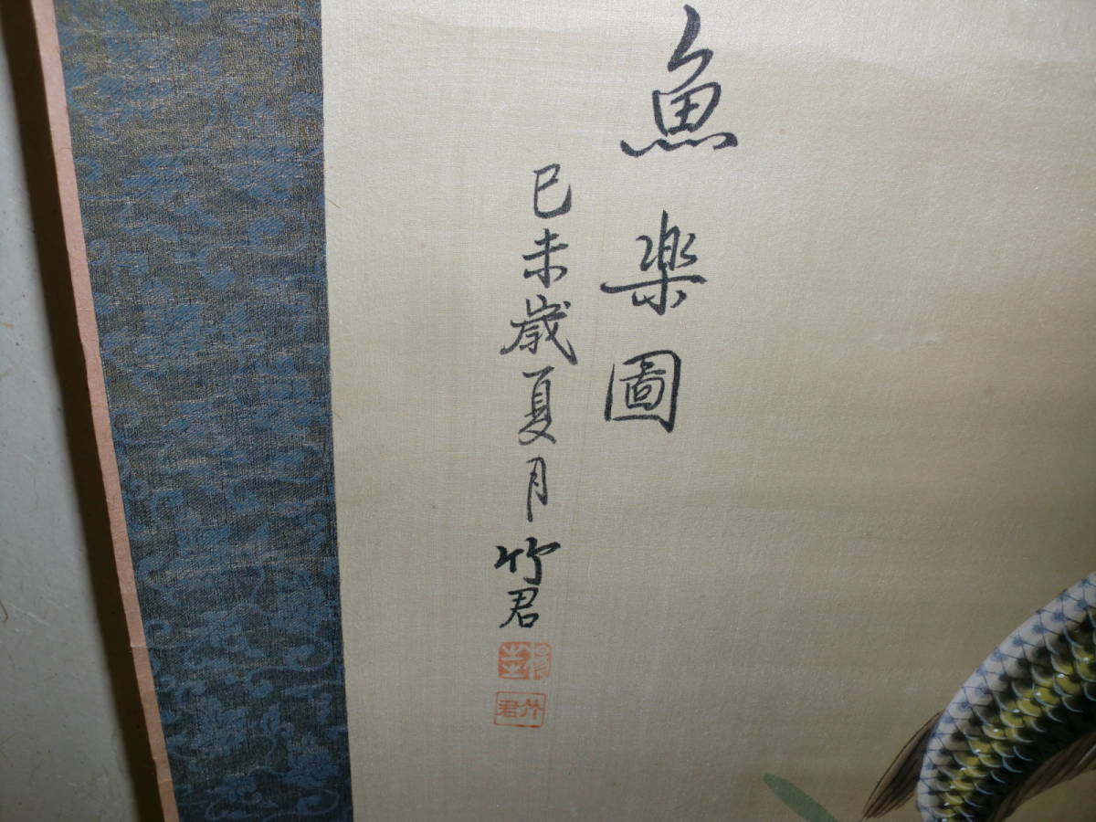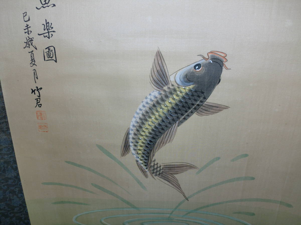 【模写】 掛軸 中国画 吉祥 開運 竹君 トテモ綺麗で洒落た魚楽圖 絹本 共箱