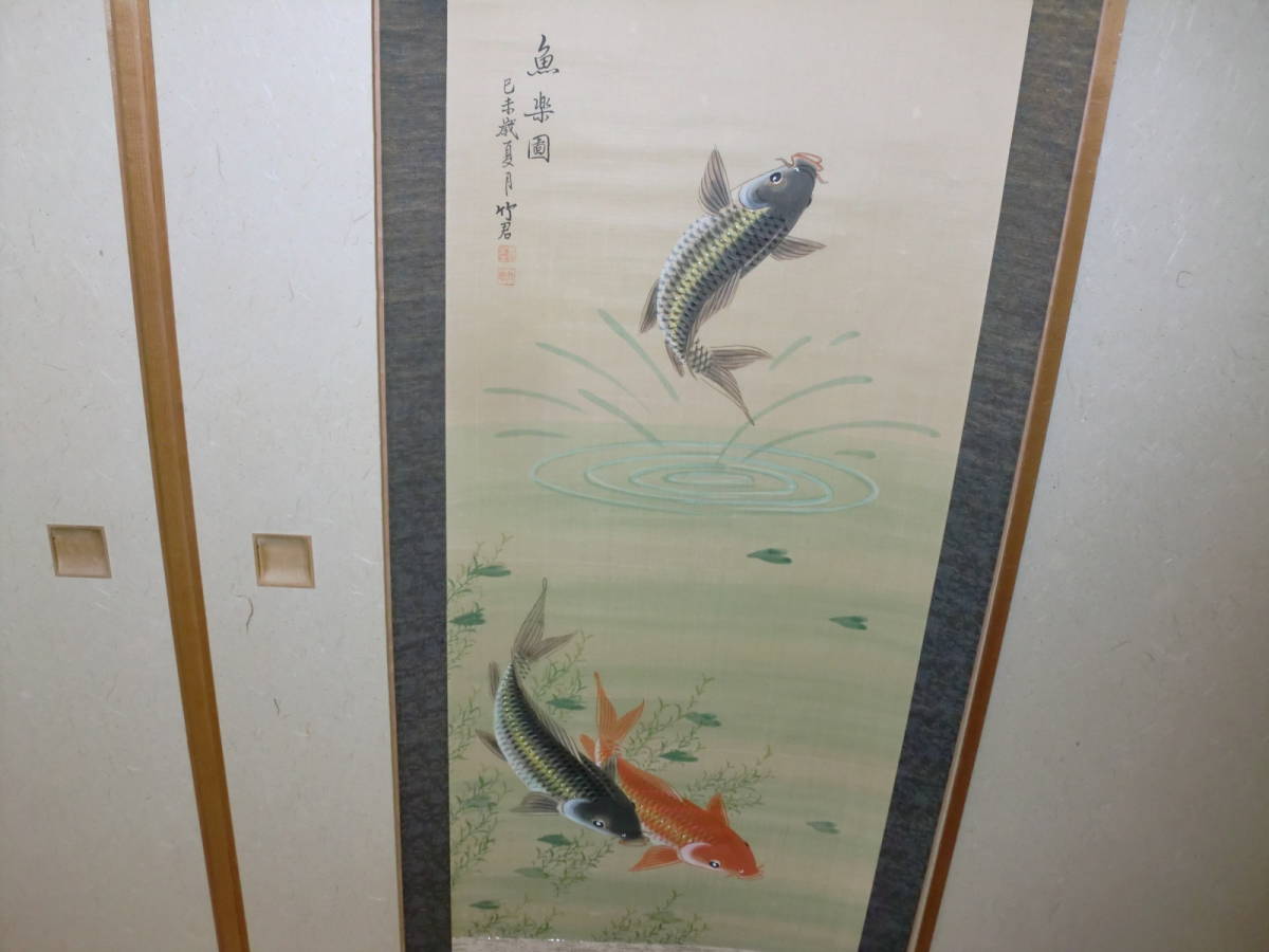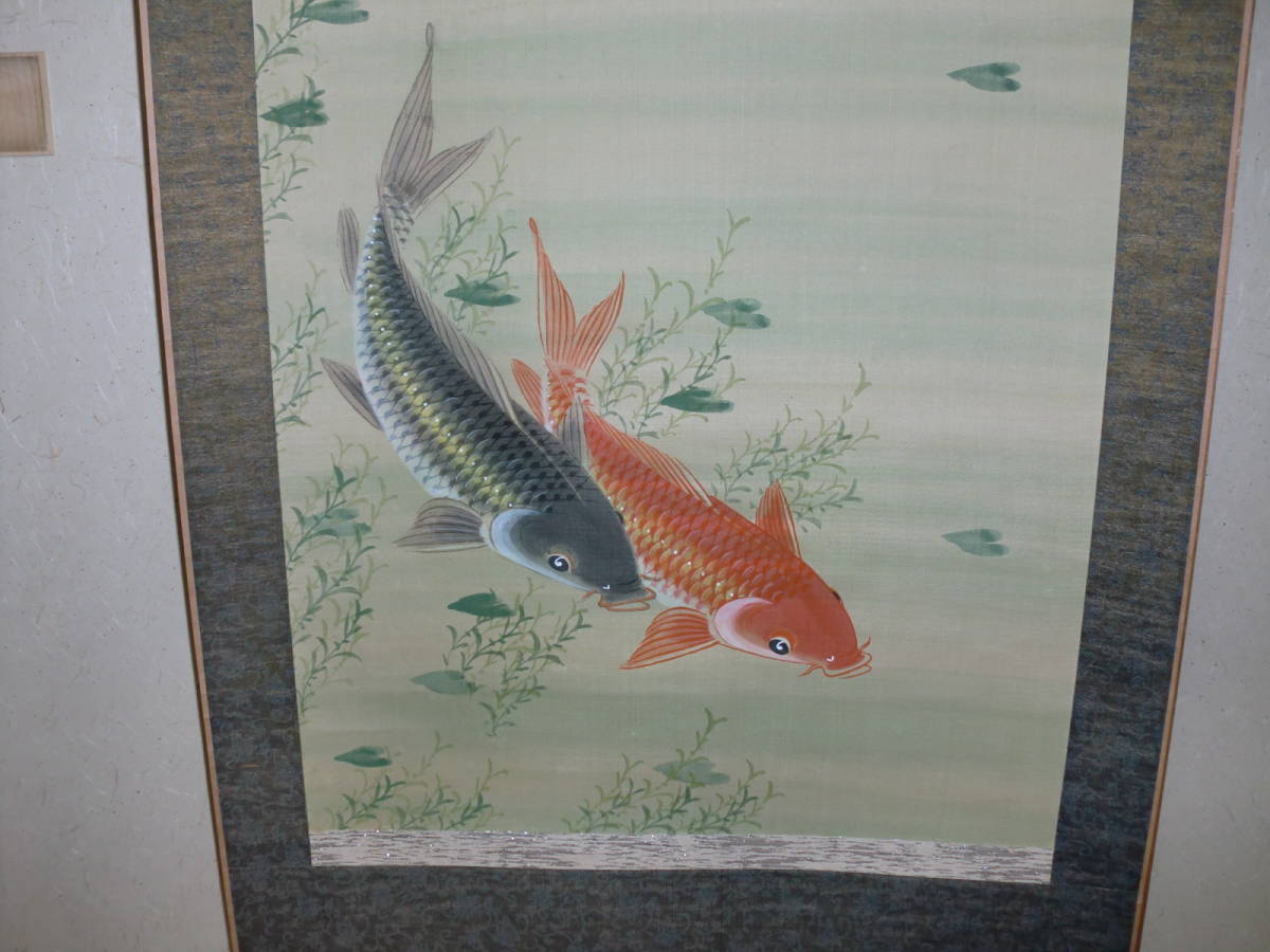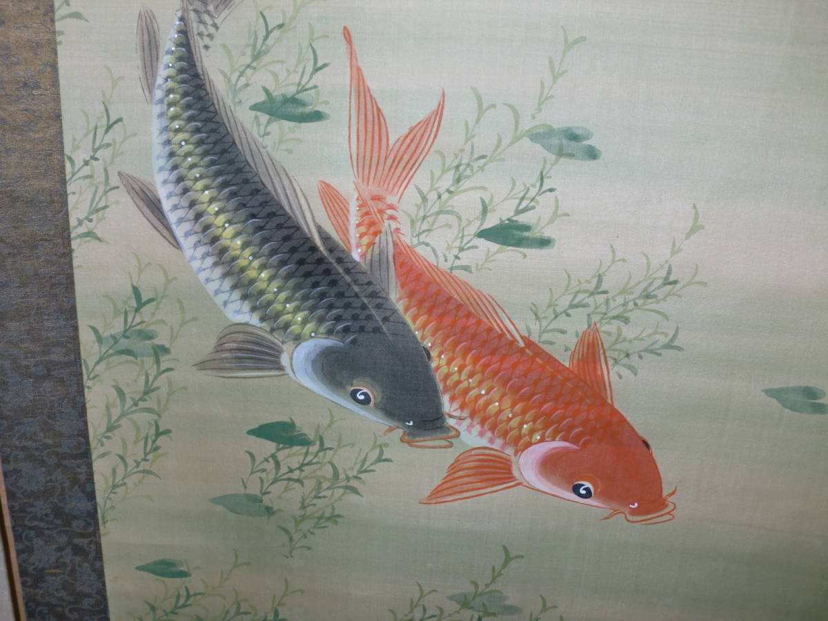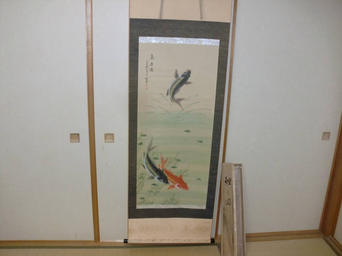 【模写】 掛軸 中国画 吉祥 開運 竹君 トテモ綺麗で洒落た魚楽圖 絹本 共箱
