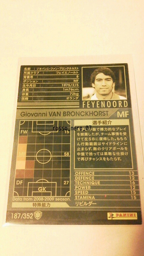 ☆WCCF2008-2009☆08-09☆187☆白☆ジオバンニ・ファン・ブロンクホルスト☆フェイエノールト☆Giovanni Van Bronckhorst☆Feyenoord☆