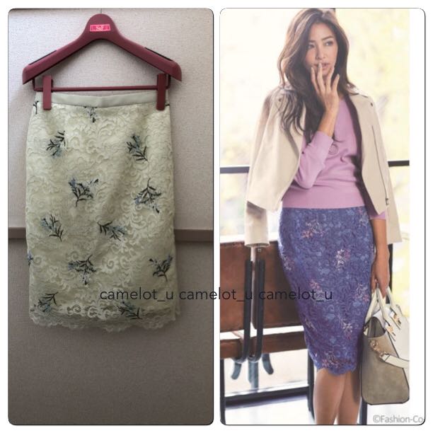 存在感のあるレース×刺繍デザインで、洗練レディに仕上げたタイトスカート。