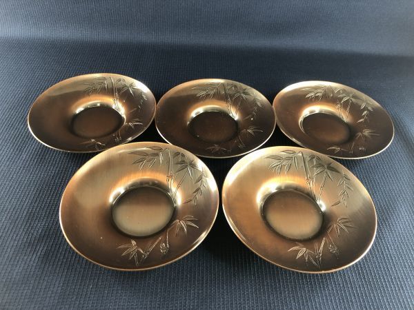銅製 茶道具 セット 茶さじ 茶托 5客 中鉢 竹柄 ブロンズ加工未使用品 です。