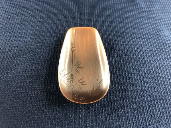 未使用品★ 銅製 茶道具 セット 茶さじ 茶托 5客 中鉢 竹柄 ブロンズ加工 箱あり管理1805 K-6