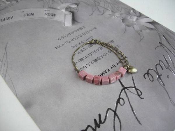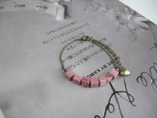 都会のアリス・・シリーズです♪キュートなピンク・・シックなモーヴピンクのロードナイトのブレスレットです♪個性的なキューブのロードナイトに華奢なボールチェーンを合わせてニューヨークモダンしています♪ロードナイトは7ミリ位のキューブです♪長さは16センチ+アジャスター6センチで最長22センチ位です♪お揃いのネックレスや同じ石のデザイン違いも出品しています♪シンプルで合わせやすいデザインを考えて作りました♪ハンドメイドをご理解いただいてノーリターン、ノークレームでお願いします♪