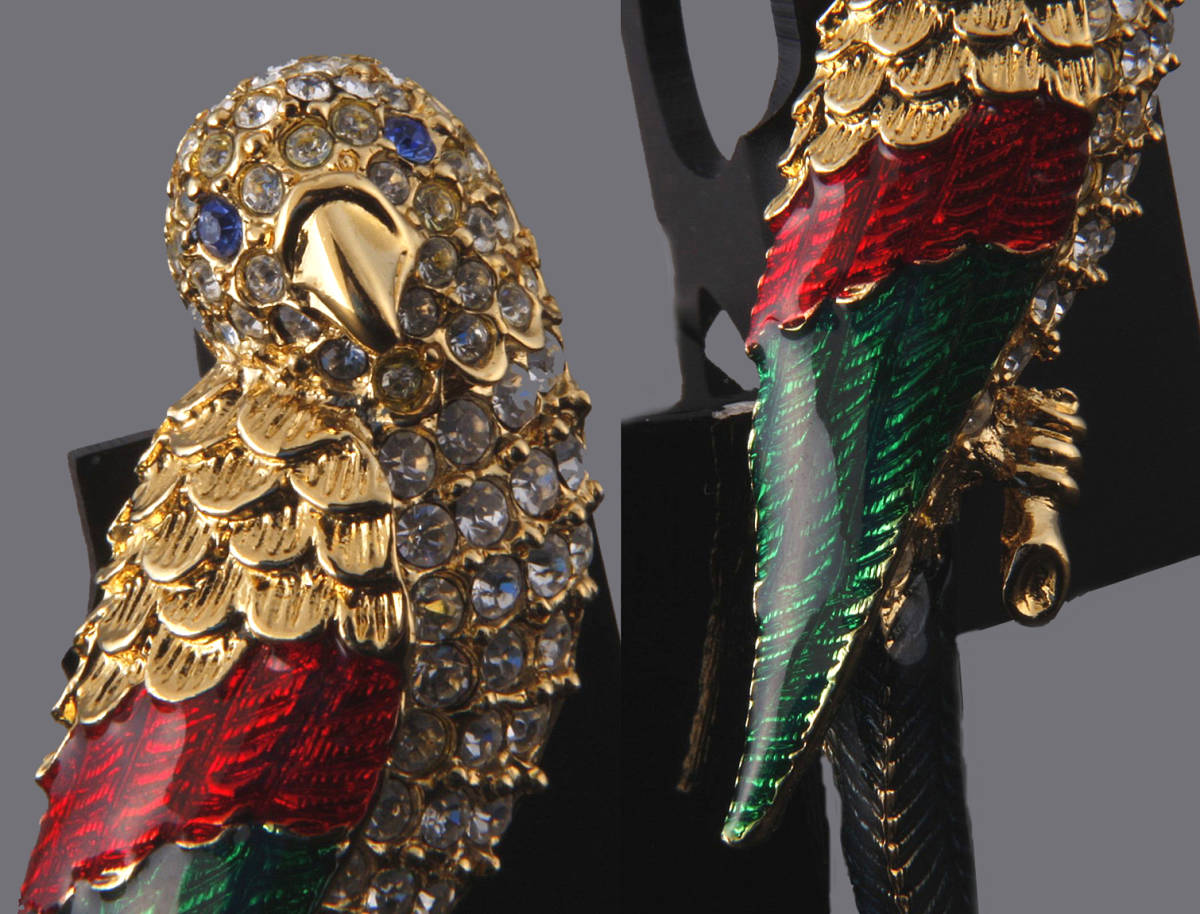 エナメル&ビジューに彩られた可愛らしい鳥のブローチです。