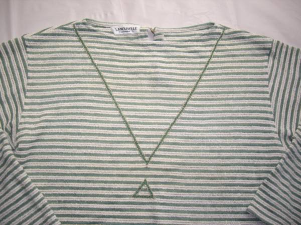 LANOUVELLE★グリーン系のボーダートップス★8分袖位★9号Mサイズ★