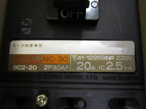 サーキットブレーカ NC型30AF BC2-20 2P 20A*3個