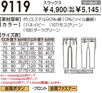 新品☆SOWA スラックス 70~130 作業ズボン ワーキング 9119