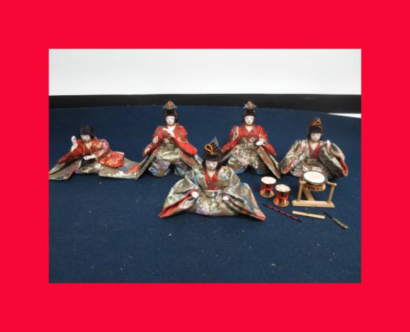「松屋五人囃子O-624」 立ち姿サイズ巾13cm高さ15cm 座り姿サイズ巾11cm高さ)12cm 木箱(共箱) |