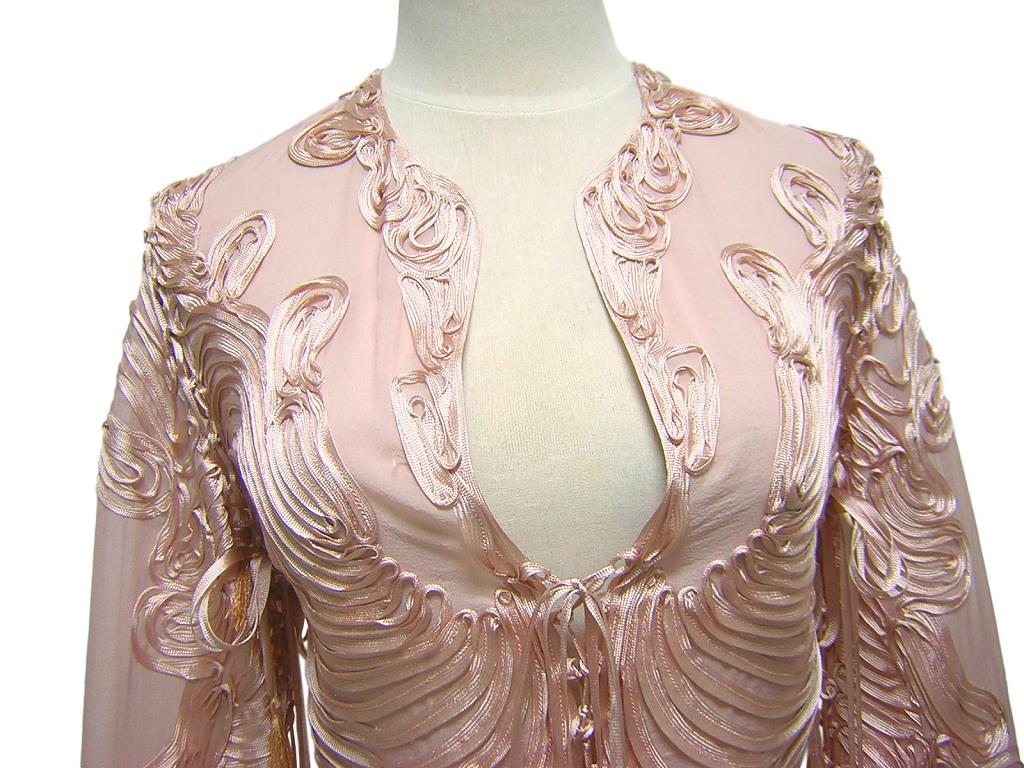 Jean Paul GAULTIER FEMME のイタリア製、 コード刺繍シルクドレスブラウスでございます。 透け感あり/伸縮性なし | |