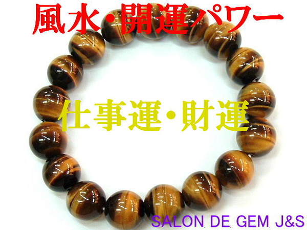 【大粒】【仕事運/財運】【高級天然タイガーアイ 風水・開運ブレスレット】12.0mm/17cm弱