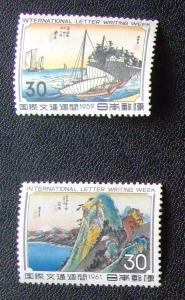 未使用昔の切手 国際文通週間「東海道53次・桑名・箱根」1959,61
