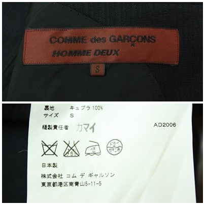 商品説明 | ご覧頂きありがとうございます。 MODEL コムデギャルソン スーツです。 MAKER 株式会社コムデギャルソン 季節は春や秋に1番良さそうです。 色はだいたい濃グレー系に見えますが光によっては濃ネイビ系にも見えます。 (スーツは言葉での色の表現が難しいのでご了承ください) 表面は画像のような織りストライプ系の生地です。 未使用で仕立て糸も付いたままでパンツ裾も上げ直しておりません。 表記サイズはジャケットS パンツMです サイズ目安ですが持ち主175 ウエスト80位です。 下記採寸を参考に自己責任で判断してください。 ◆サイズ (平置き採寸) ・ジャケット:肩幅42.5/着丈73/身幅(脇~脇)51位/袖丈63 ・パンツ:ウエスト41(伸ばし3位可)/股下89/裾幅19.5 (素人採寸ですので多少の誤差はご了承願います。) ◆素材:毛100 ◆仕様 ジャケット:3釦、センターベント、背抜き パンツ:タックなし あくまでも自宅保管の中古品ですので 細部にまでこだわる神経質な方、古着に慣れていない方、採寸や色にうるさい方は入札しないでください。 未使用ですがお店に売ってる状態とは違いますので 詳細な瑕疵につきましては ご容赦いただけますようお願い申しあげます。 ピカピカでほぼ新品の状態だと思います。 |