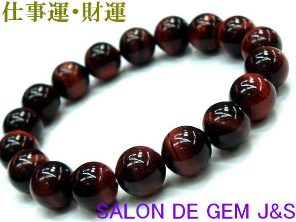 【大粒】【仕事運:財運】【高級天然レッド タイガーアイ 風水・開運ブレスレット】10.0mm/約14cm