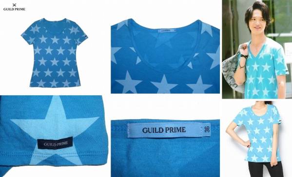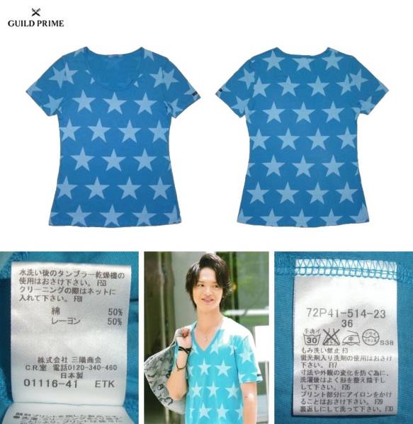 入手困難 キスマイ 玉森裕太さん着用 GUILD PRIME WOMENS スタープリント UネックTシャツ (36) BLUE
