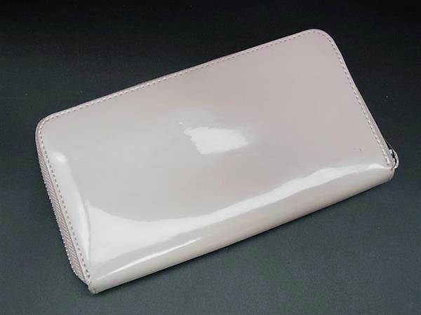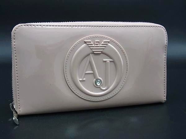 ARMANI JEANS アルマーニジーンズ パテントレザー ラウンドファスナー 長財布 ウォレット レディース ピンク系 DH3887
