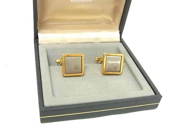 ■美品■ dunhill ダンヒル カフスボタン カフリンクス アクセサリー ビジネス 紳士 メンズ ゴールド系×シルバー系 DJ1452