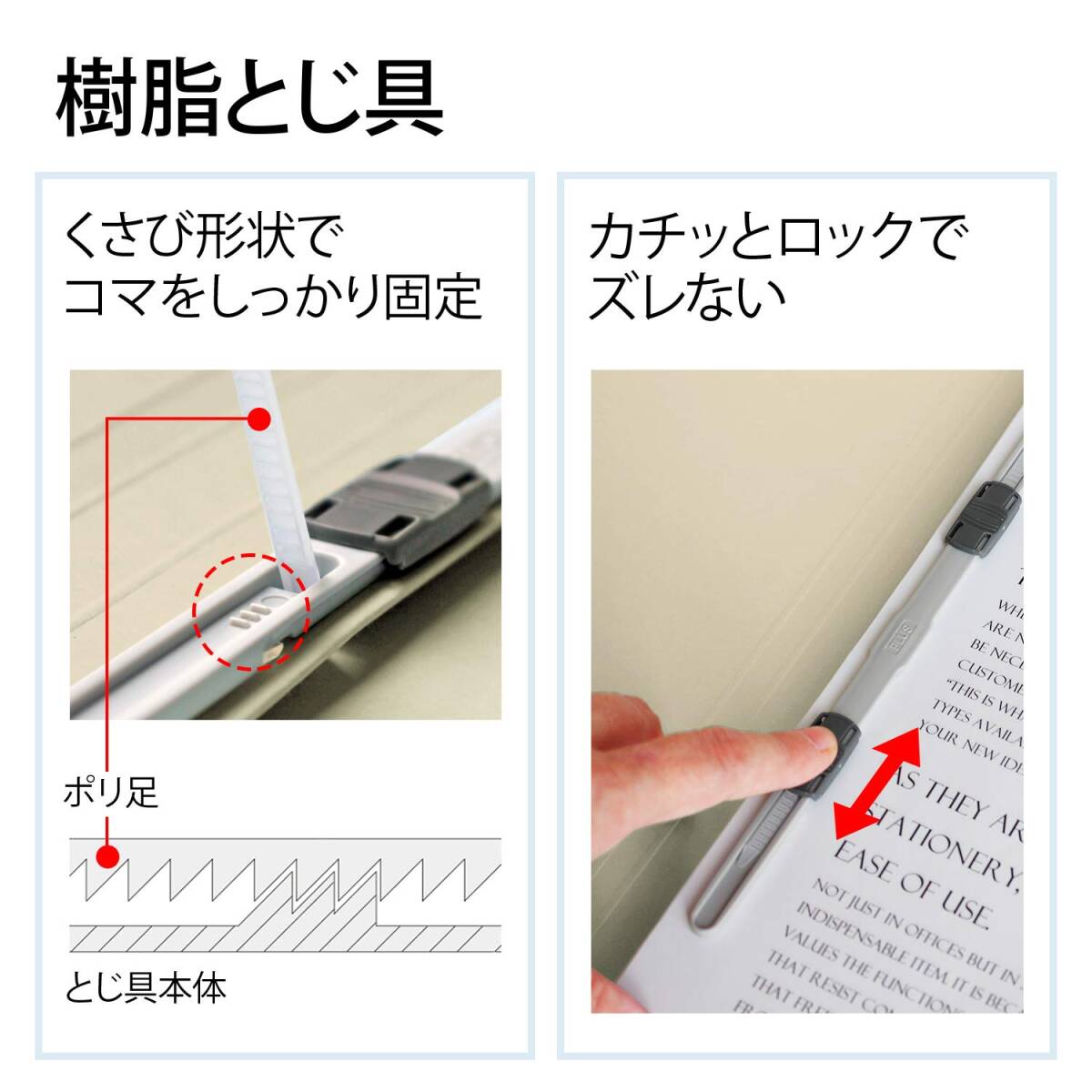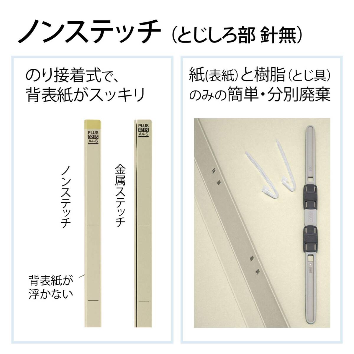 [特長] 1.「背補強タイプ」背が丈夫で破れにくい ・破れやすい背表紙の上下部分をテープで補強 ・繰り返し指をかけてもボロボロになりにくいので、頻繁に取り出す書類の保管におすすめ 2.「ノンステッチ」なので、簡単・分別廃棄 ・表紙のとじしろ部の金属ステッチをなくした、のりによる接着式 ・とじ具を外すだけの簡単分別で、背表紙の浮きもなくスッキリと収納 3. 丈夫で使いやすく強度のある表紙は、環境にも配慮 ・強度のある古紙パルプ配合率95%再生紙を使用 ・丈夫で使いやすさも抜群 4. 100%再生樹脂製とじ具を使用 ・100%再生ポリプロピレン(PP)製薄型とじ具採用の、クリーン焼却できる素材