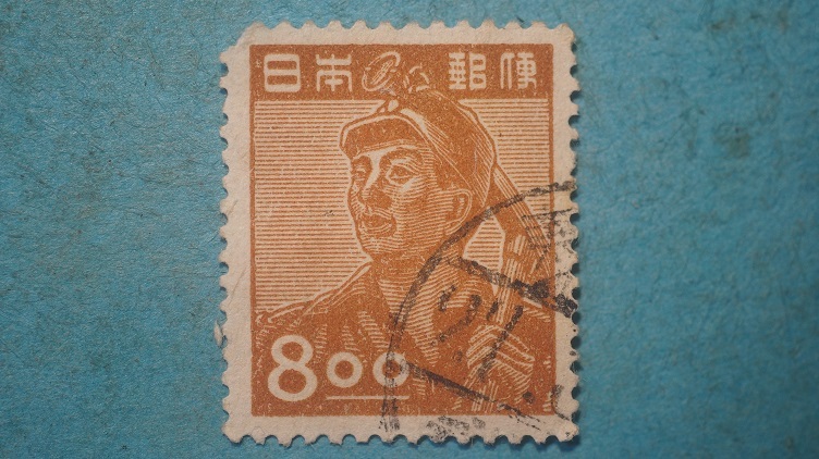 産業図案切手   8円  炭鉱夫   昭和すかしなし  1枚