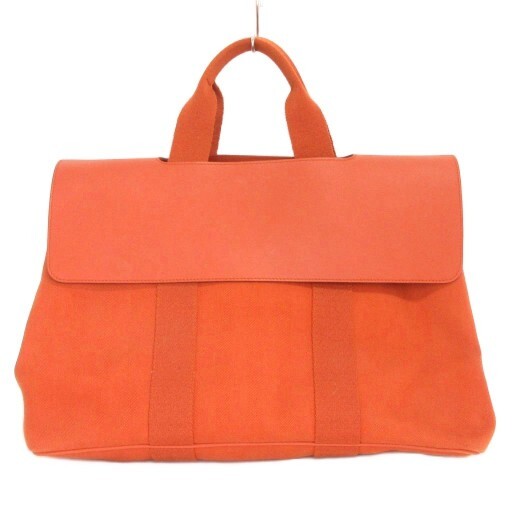 エルメス HERMES ヴァルパライソ MM トートバッグ ポーチ付き キャンバス レザー オレンジ 鞄 ★AA☆