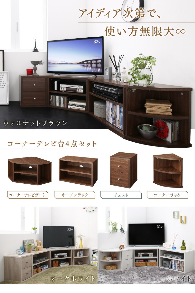 テレビ台 ローボード コーナーテレビ台 コーナータイプTV台 32インチ 1人暮らし コーナー 収納 チェスト 引き出し4点セット