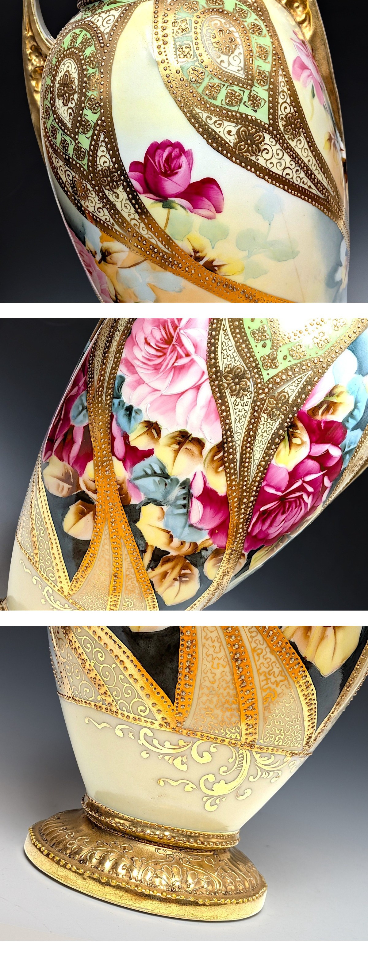 | 1891年~1915年頃 オールドノリタケ 金盛 アールヌーヴォー 薔薇図紋 両耳花瓶 | ||||