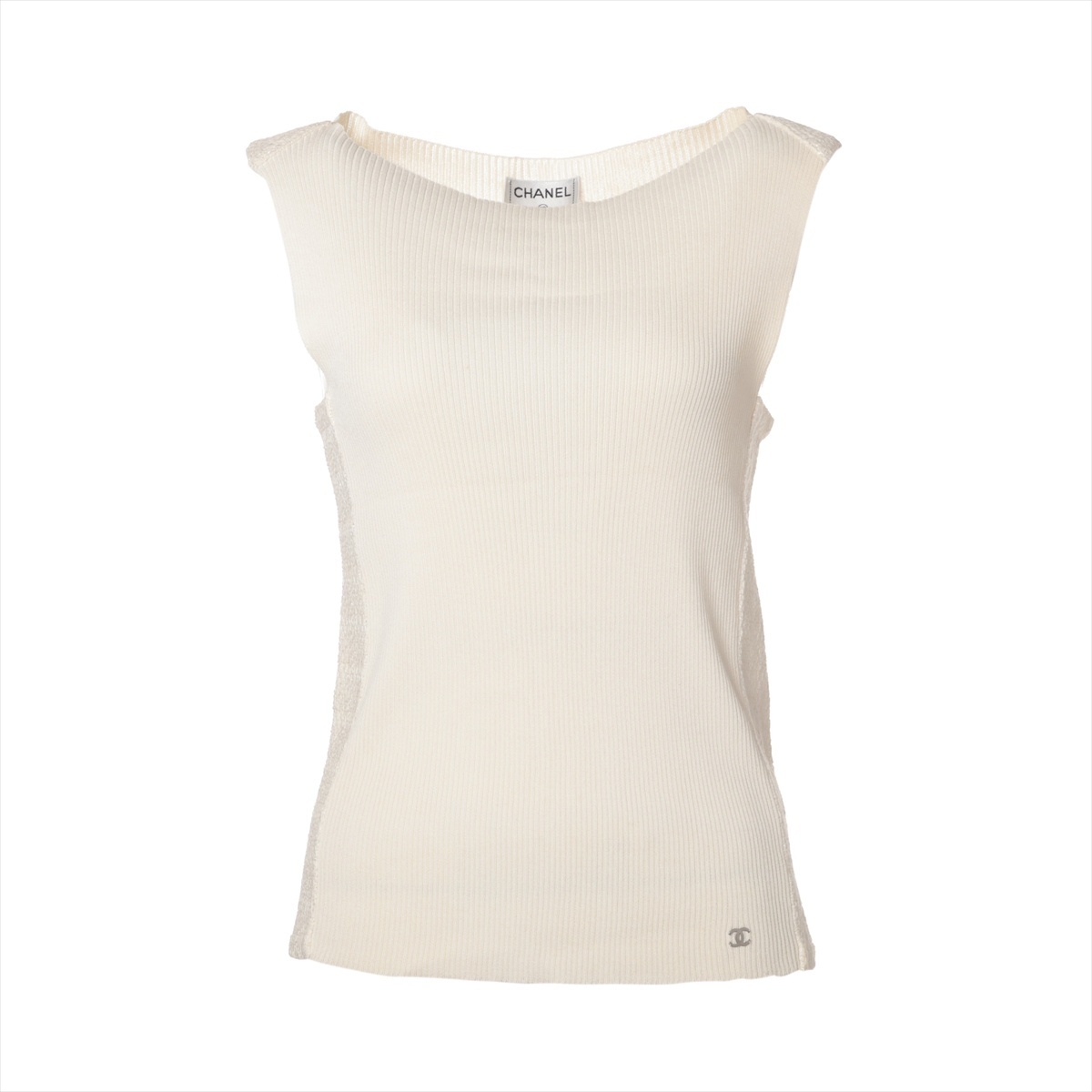 シャネル CHANEL タンクトップ レーヨン コットン プリーツ ノースリーブ 99P 1999 アイボリー
